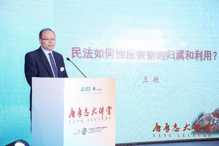 中國人民大學(xué)副校長、貿(mào)仲仲裁員王軼以“民法如何回應(yīng)數(shù)據(jù)的歸屬和利用”為題開展主旨演講。他介紹了數(shù)據(jù)的含義和性質(zhì),援引民法典闡釋了民法上數(shù)據(jù)的內(nèi)涵與外延,剖析了數(shù)據(jù)承載的人身利益、財(cái)產(chǎn)利益和民法回應(yīng)的難題,重點(diǎn)分享了他在數(shù)據(jù)承載利益分配問題上的真知灼見。他表示,建構(gòu)數(shù)據(jù)基礎(chǔ)法律制度是法學(xué)界的使命,數(shù)據(jù)立法過程中要注意立法權(quán)、執(zhí)法權(quán)和司法權(quán)的配置。