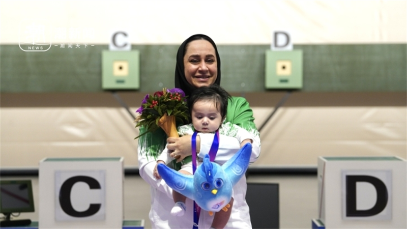 10月24日傍晚,富陽銀湖體育中心,杭州亞殘運(yùn)會(huì)射擊項(xiàng)目SH1級(jí)女子10米氣手槍頒獎(jiǎng)儀式上,銀牌得主、杭州亞殘運(yùn)會(huì)伊朗代表團(tuán)射擊運(yùn)動(dòng)員薩雷赫?賈萬馬爾迪一出場(chǎng),就引得現(xiàn)場(chǎng)一片歡呼。