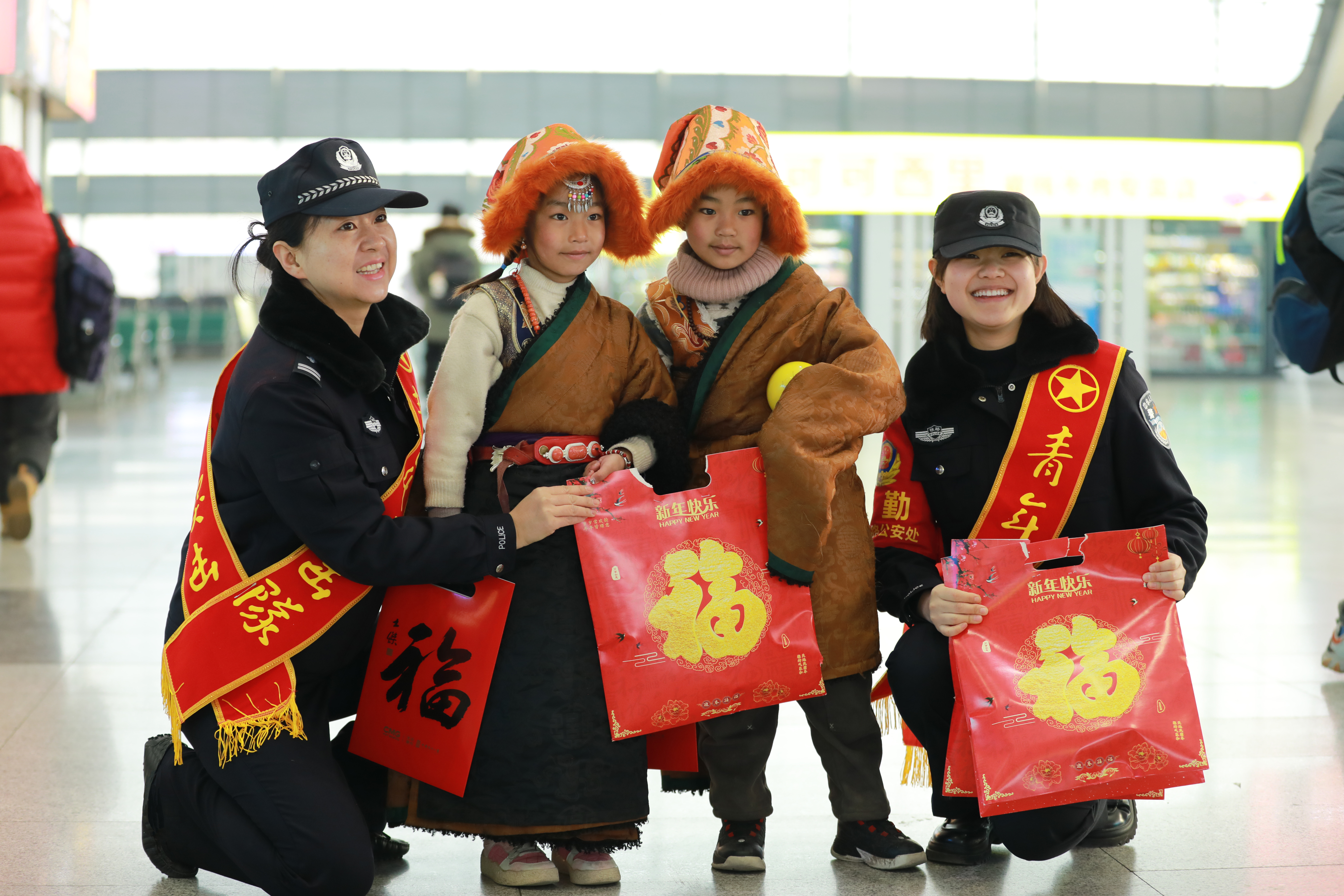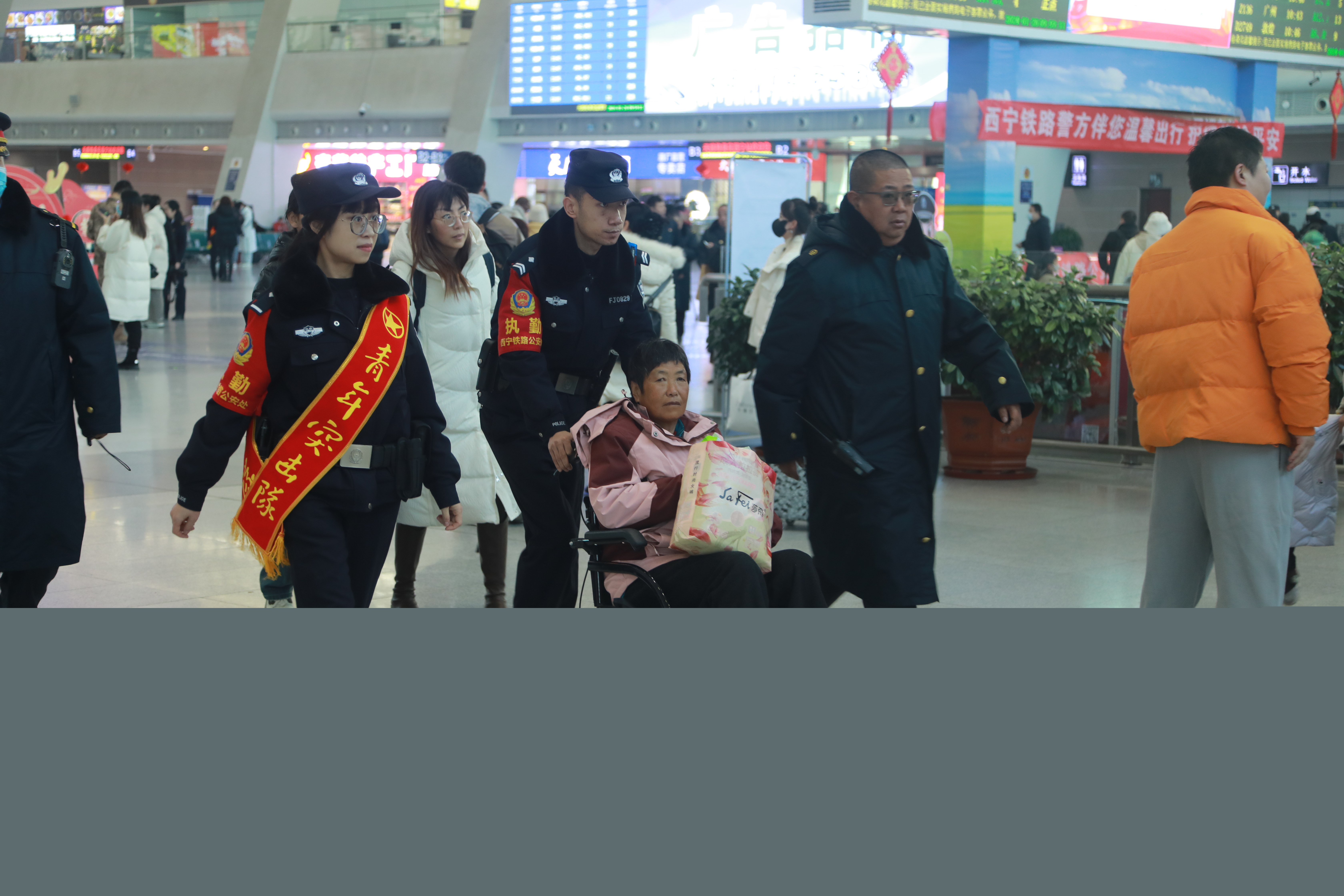 西寧站派出所發(fā)揮“歐警官伴您平安出行”黨建品牌優(yōu)勢,在候車區(qū)設(shè)置“歐警官便民服務(wù)崗”,積極開展各類便民服務(wù)活動。車站執(zhí)勤組根據(jù)客流情況及時增加巡邏警力,第一時間為需要幫助的旅客提供服務(wù)。同時,為將平安、祥和的春節(jié)氣息帶給每一位旅客,西寧鐵路公安處還組織民警為旅客送上一副副春聯(lián),拉近了警民之間的距離。