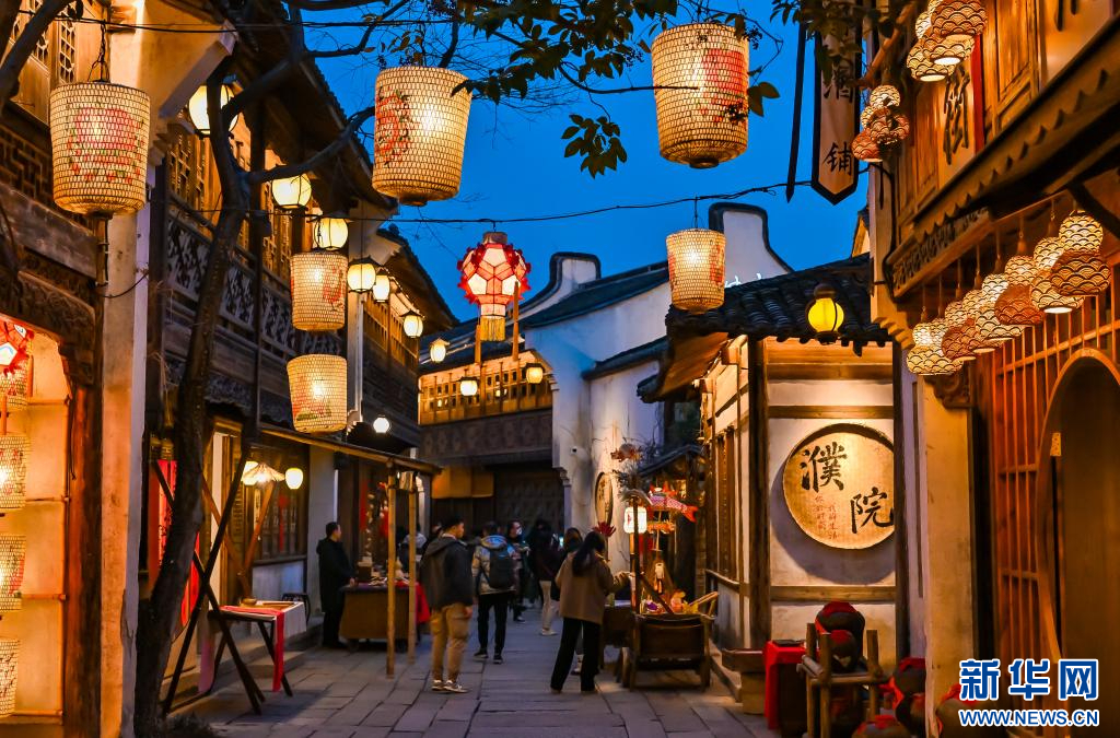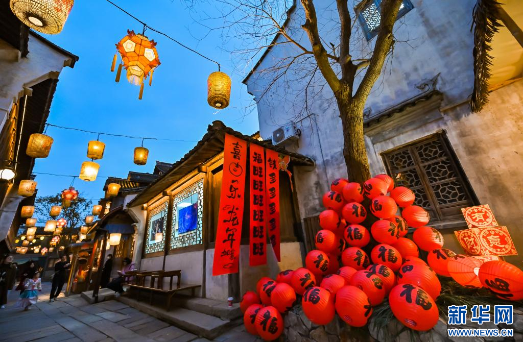 濮院寺灣街呈現出濃濃的新年氛圍。新華網發(fā) 濮院時尚古鎮(zhèn)供圖