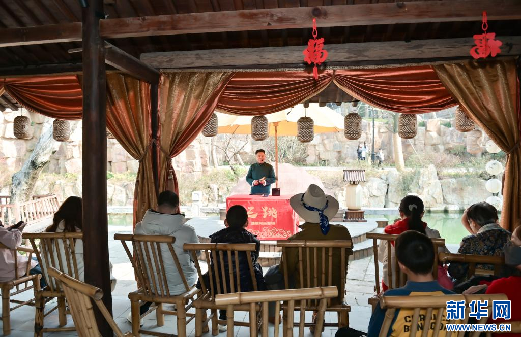 濮院瓦舍說書——桐鄉(xiāng)三跳。新華網發(fā) 濮院時尚古鎮(zhèn)供圖