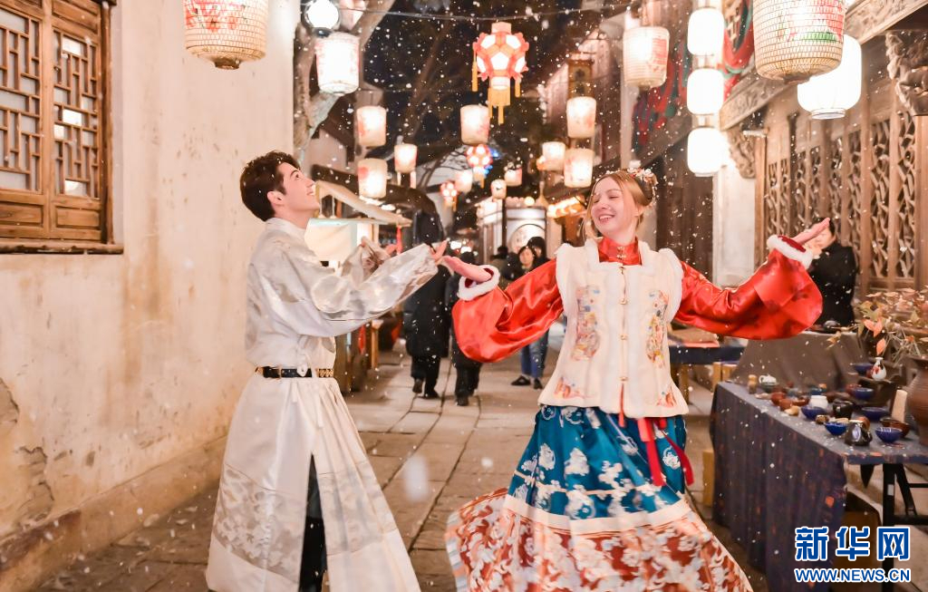 北橫街開啟“今日有雪”活動。新華網發(fā) 濮院時尚古鎮(zhèn)供圖