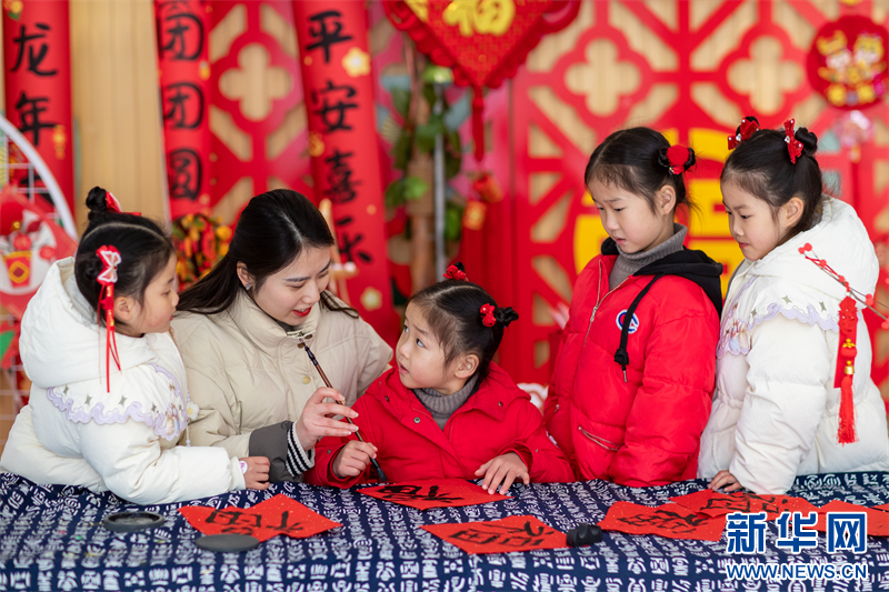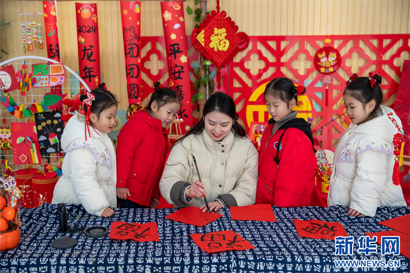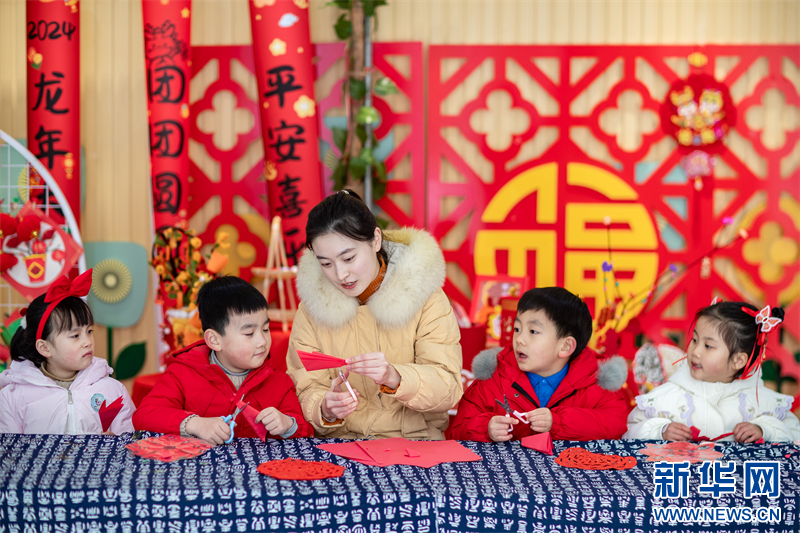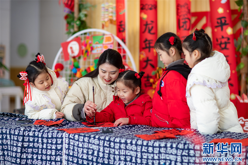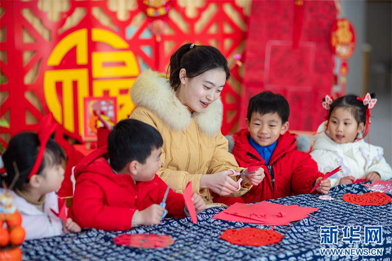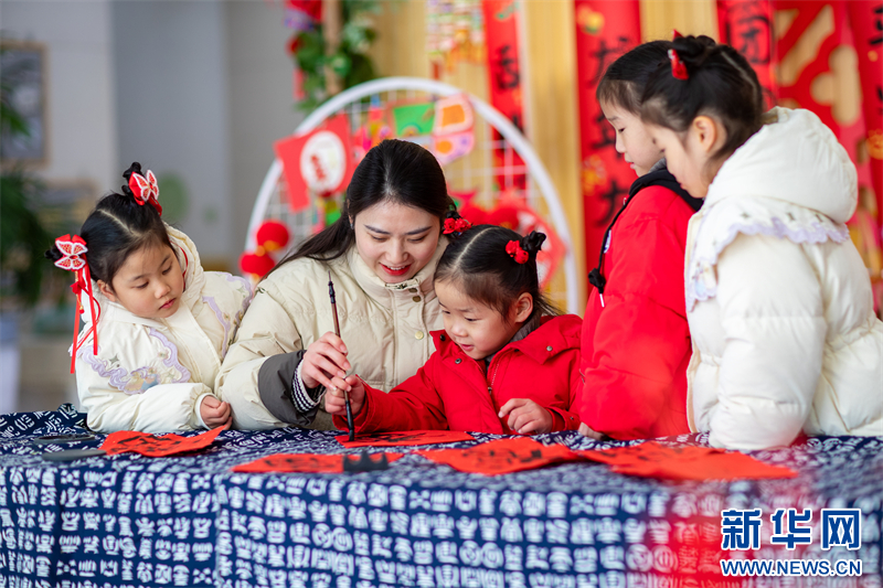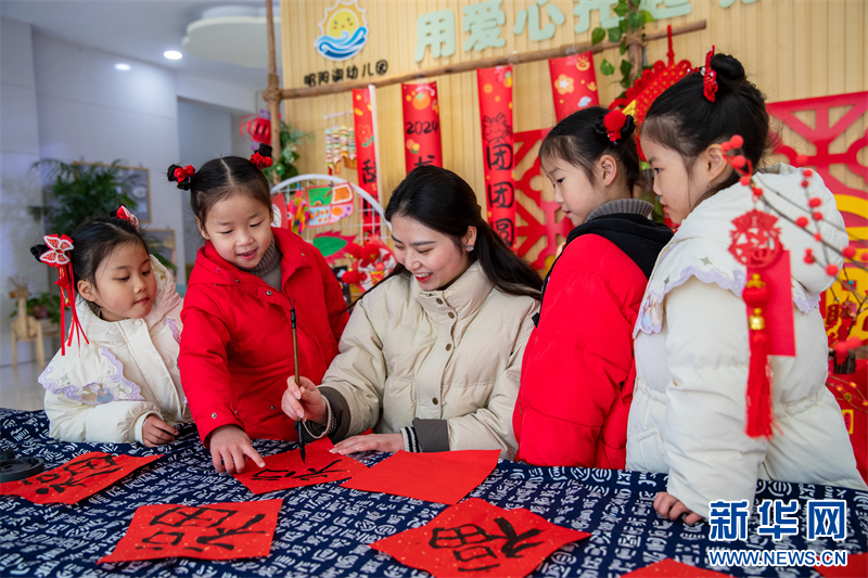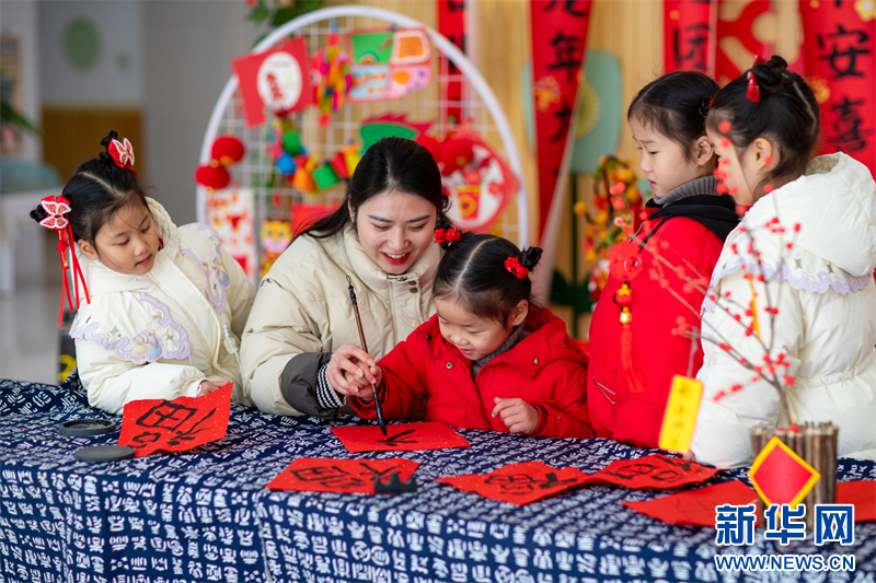 近日,江蘇省興化市昭陽湖幼兒園開展各項迎新春活動,孩子們在老師的指導(dǎo)下寫“福”字、剪窗花,喜迎春節(jié)的到來。(沙佳儀 報道員:周社根)