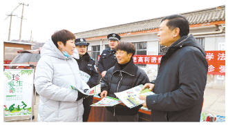在吆喝、討價(jià)還價(jià)聲中,《法治日?qǐng)?bào)》記者穿過(guò)擁擠的人群,來(lái)到一個(gè)特殊攤位——“普法宣傳攤”,擺攤的是薊州區(qū)司法局孫各莊司法所、漁山強(qiáng)制隔離戒毒所以及天津市公安局薊州分局孫各莊派出所的工作人員。