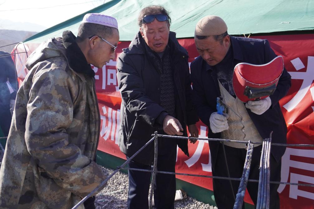 1月16日,在甘肅省臨夏州積石山縣大河家鎮(zhèn)陳家村安置點(diǎn),群眾參加電焊技能培訓(xùn)班。新華社記者 馬希平 攝