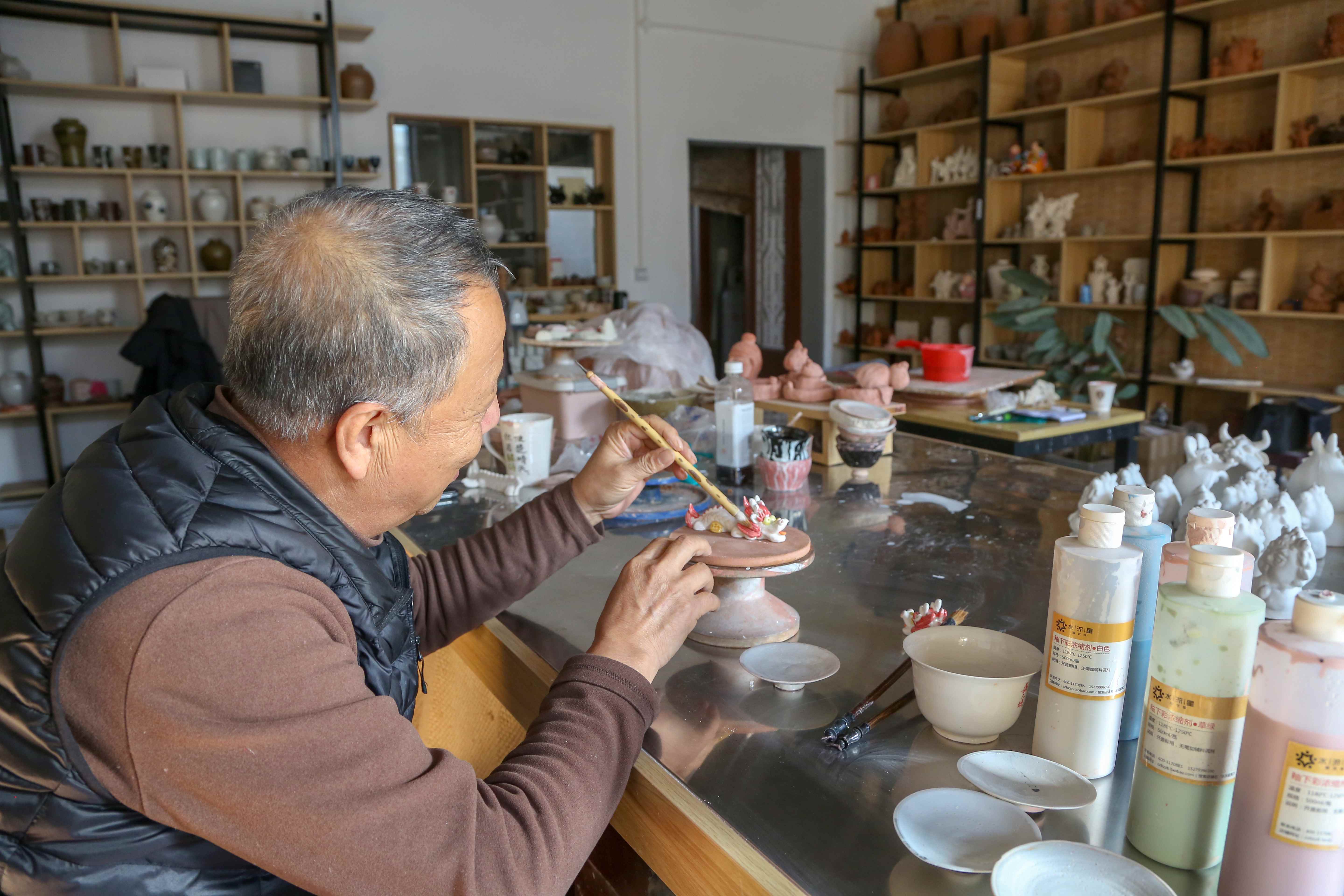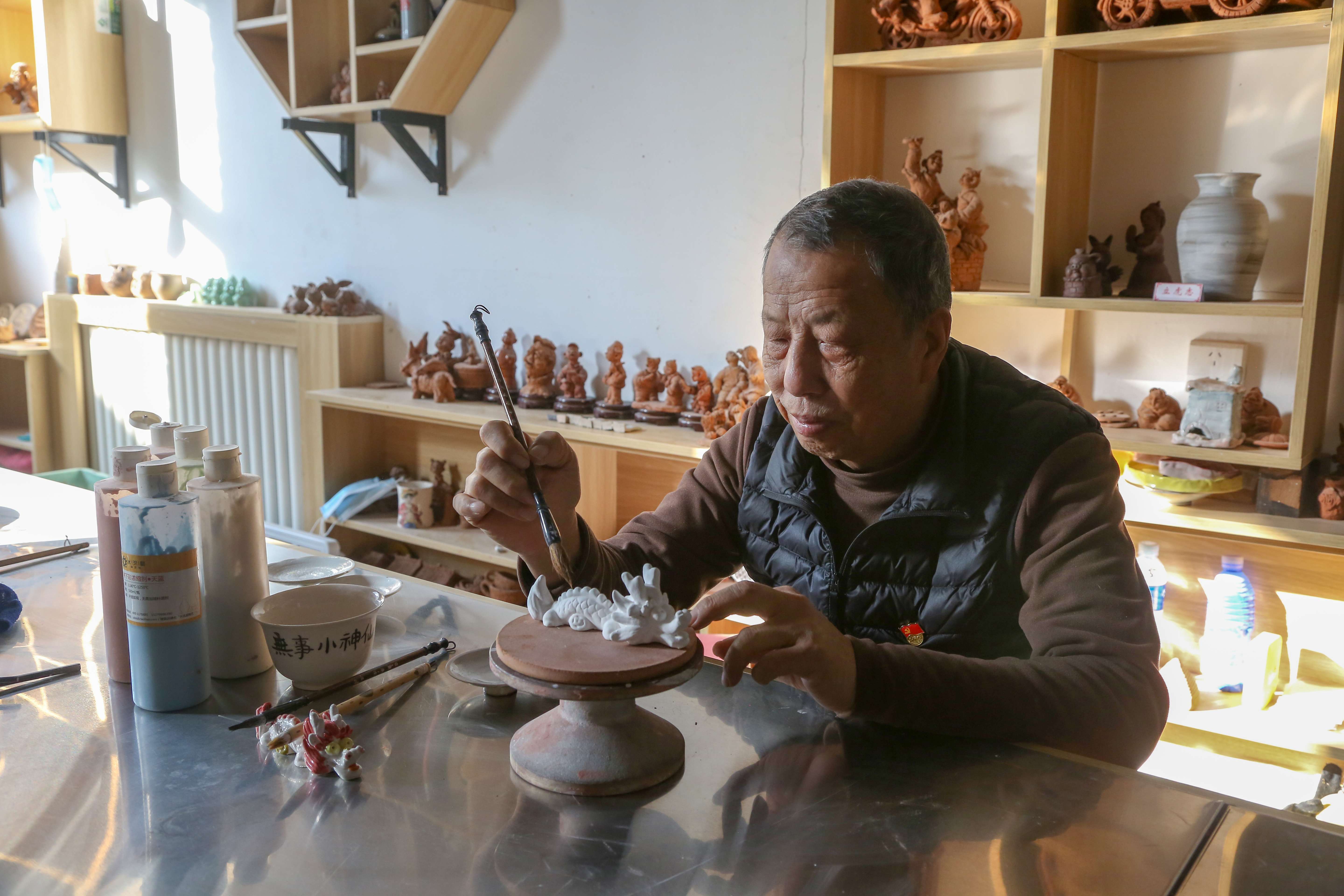 一抔泥土、一把刻刀,經(jīng)巧手捏制、刻畫(huà)、修整、彩繪、燒制等多道工序后,一個(gè)個(gè)活靈活現(xiàn)、寓意吉祥的泥塑作品便制作完成了。