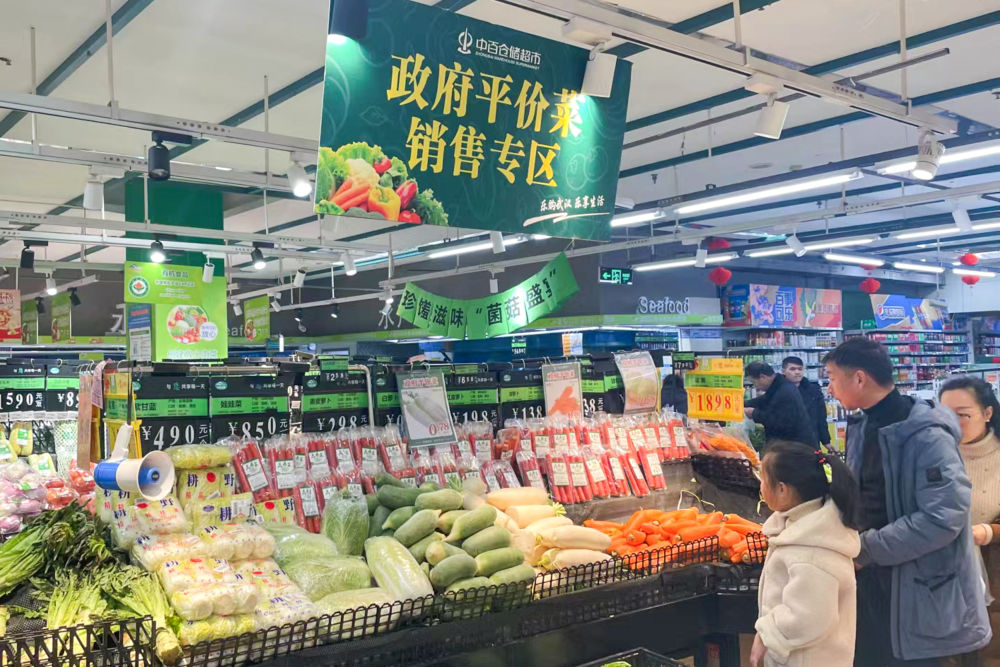 為積極應(yīng)對近期雨雪冰凍天氣影響,確保武漢市春節(jié)期間蔬菜市場價格平穩(wěn),保障市民基本生活需求,2月8日至2月12日期間,武漢市政府部署在武商、中百、中商三大商超130余家門店設(shè)置政府平價菜銷售專區(qū),銷售大白菜、包菜、白蘿卜、胡蘿卜、土豆5種蔬菜。