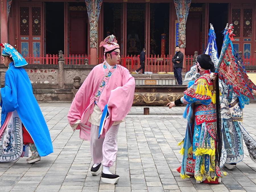 “咚鏘咚咚鏘!”春節(jié)里,四川德陽廣漢文廟內(nèi),戲文聲,鑼鼓聲,叫好聲,掌聲響成一片。