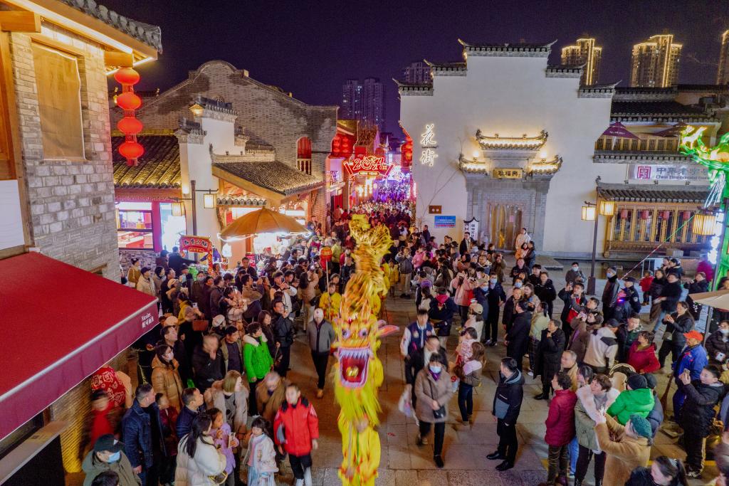 2月10日,舞龍巡游在安徽蕪湖古城花街上演。新華社發(fā)