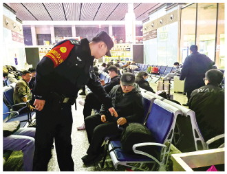 “南站分為到達(dá)層、站臺區(qū)、候車區(qū)三大區(qū)域,我們夜間安排6名民警、4名輔警在崗,分區(qū)開展巡邏防控,維護(hù)站車秩序。同時,報警臺就設(shè)在候車室,安排人員24小時值守。”馬天宇一邊巡邏,一邊向《法治日報》記者介紹說,夜間旅客容易疲憊,往往會放松警惕。對此,該所加大步巡加車巡頻次,不間斷開展巡查,讓旅客隨時見警,報警求助更方便。