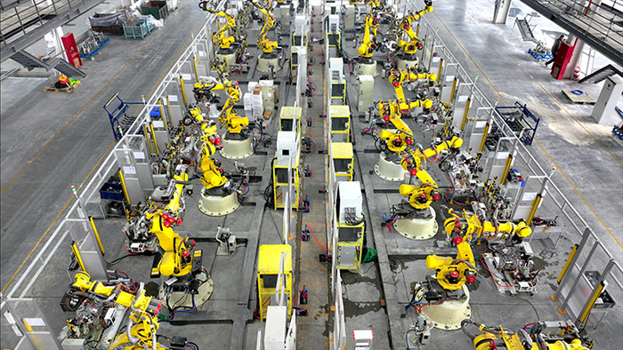 在安徽翊洋汽車零部件有限公司,機械臂正在加工汽車零部件