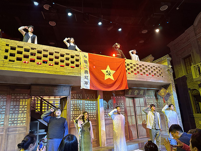 “十萬劇場”打造了沉浸式、元宇宙、年輕化紅色演藝戲劇《立夏》,以1929年在金剛臺地區(qū)爆發(fā)的立夏節(jié)(商南)起義為原型,帶領觀眾穿越綿長的時光隧道,身臨其境地感受當時人民所受的沉重壓迫,體會革命者草長鶯飛般的革命激情。