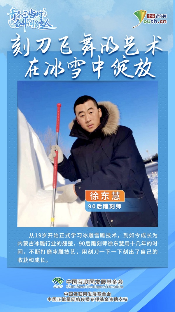 徐東慧雕刻冰雪,風(fēng)霜雕刻徐東慧?!皠倓傞_始的時(shí)候,整個(gè)團(tuán)隊(duì)只有我和我父親、哥哥三個(gè)人,整個(gè)冬天下來也做不了幾個(gè)作品,只能勉強(qiáng)糊口。團(tuán)隊(duì)的發(fā)展也十分緩慢,但是我們堅(jiān)持了下來,憑借過硬的技術(shù)在2017年獲得了‘呼倫貝爾首屆全國雪雕邀請賽’優(yōu)秀獎(jiǎng),2018年又獲得了‘呼倫貝爾·牙克石第二屆全國雪雕邀請賽’第三名,之后我們的團(tuán)隊(duì)不斷成長,更多志同道合的小伙伴聚在一起?!蹦軓囊粋€(gè)學(xué)徒工通過奮斗取得如今的成績,徐東慧感到很欣慰。