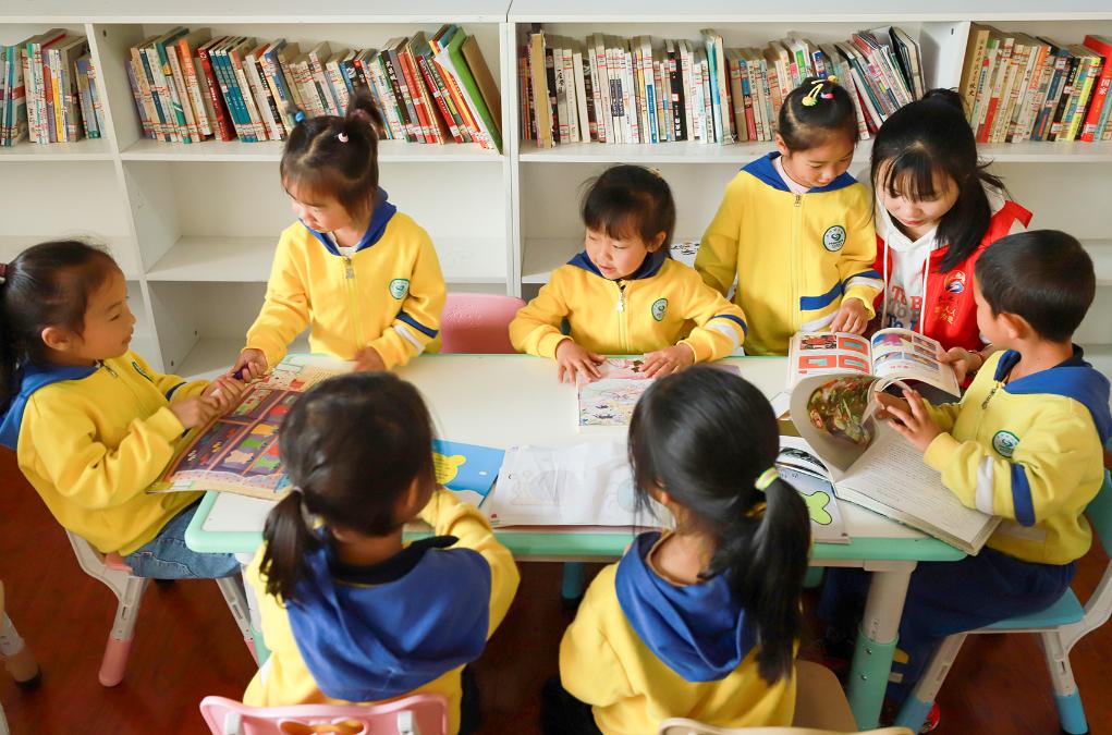 2024年4月30日,志愿者帶領(lǐng)小朋友在貴州省黔東南苗族侗族自治州岑鞏縣大有鎮(zhèn)大坪同心社區(qū)閱讀。新華社發(fā)(徐雪 攝)