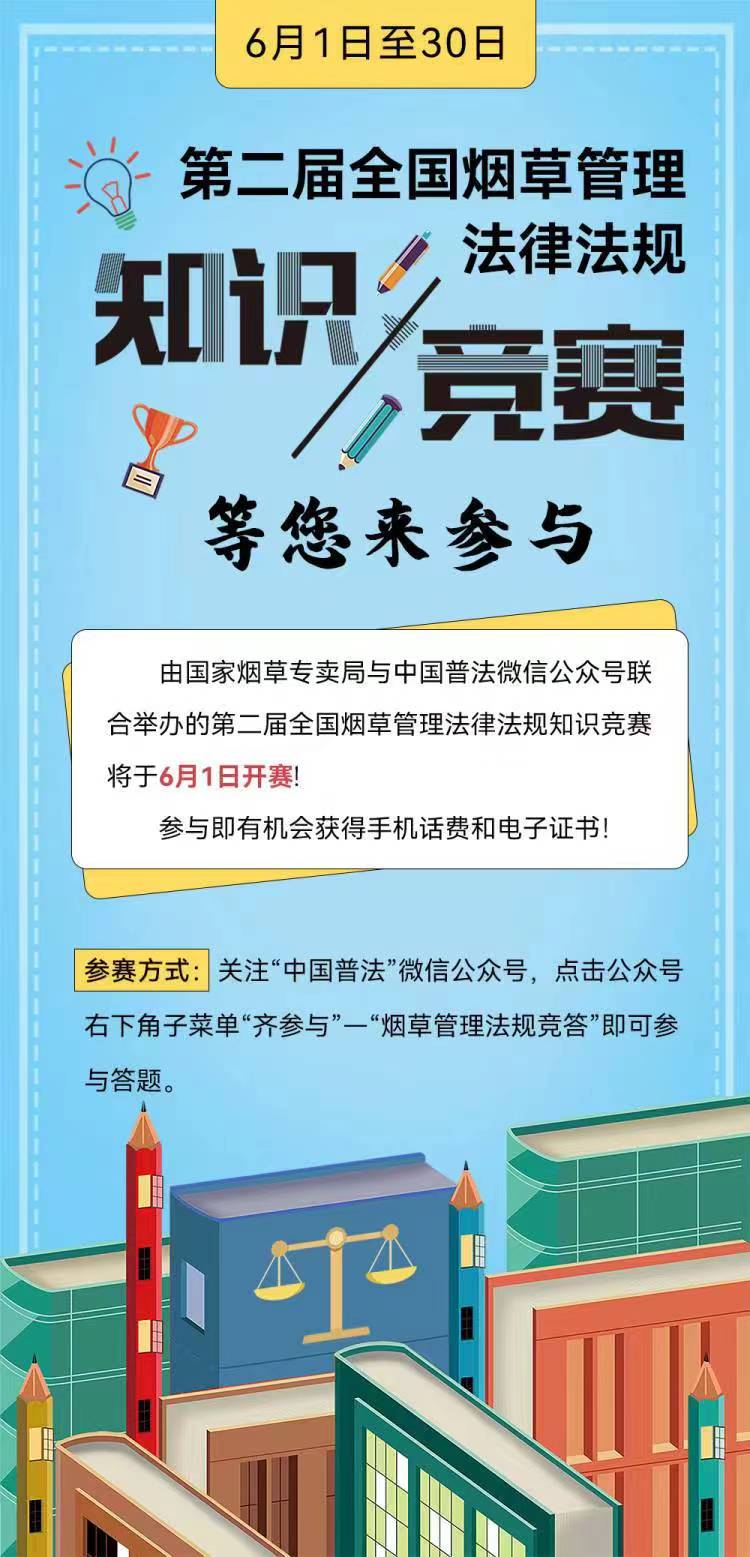 第二屆全國(guó)煙草管理法律法規(guī)知識(shí)競(jìng)賽6月1日開賽