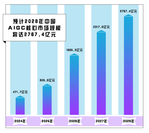 艾媒咨詢發(fā)布的《2023年中國AIGC行業(yè)發(fā)展研究報告》顯示,2024年我國生成式人工智能行業(yè)核心市場規(guī)模預(yù)計(jì)為471.7億元,2028年將達(dá)2767.4億元,規(guī)模相較2024年翻了近5倍。持續(xù)擴(kuò)大的市場規(guī)模,也面臨著風(fēng)險和挑戰(zhàn)。