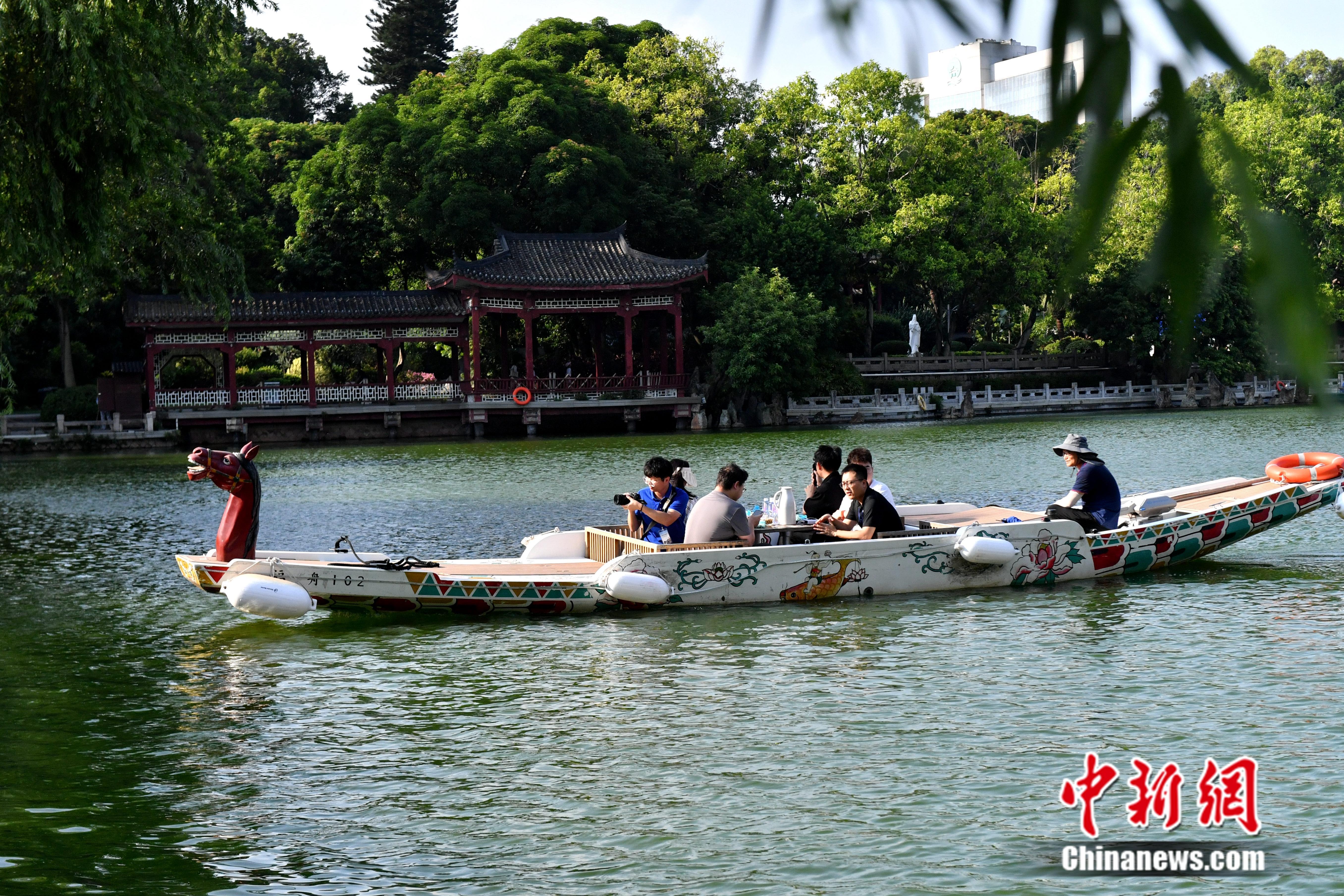 福州西湖岸邊的特色龍舟游船。蘇亦瑜 攝