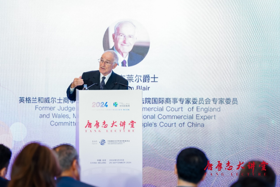 (英格蘭和威爾士商事法庭前庭長、大法官,中國最高人民法院國際商事專家委員會委員威廉·布萊爾爵士作主旨演講)