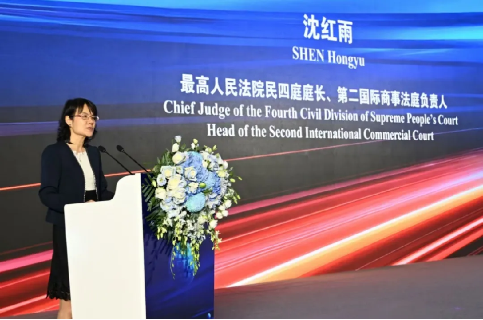 (最高人民法院民四庭庭長、第二國際商事法庭負(fù)責(zé)人沈紅雨發(fā)表主旨演講)