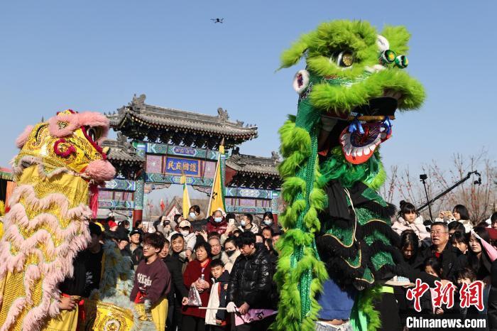 2月9日,河北省霸州市勝芳古鎮(zhèn)傳統(tǒng)花會(huì)巡游正式拉開(kāi)帷幕。從農(nóng)歷正月十二到正月十六,50余道花會(huì)將輪番登場(chǎng)展示各自絕活,為當(dāng)?shù)厝罕姾陀慰瞳I(xiàn)上傳統(tǒng)文化盛宴。圖為2月9日,霸州市勝芳古鎮(zhèn)花會(huì)活動(dòng)中,獅子會(huì)表演現(xiàn)場(chǎng)。賈珺 攝