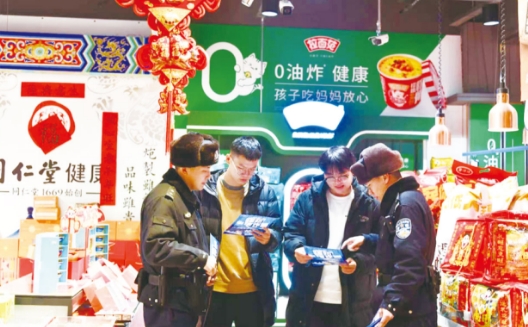 圖為民警在超市開展宣傳工作。