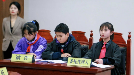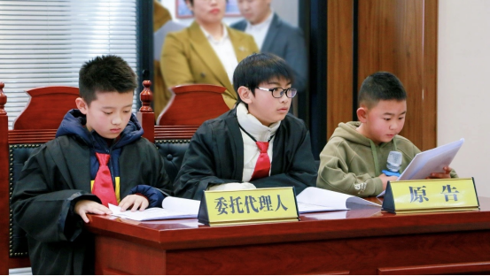 模擬法庭環(huán)節(jié),在“小法官”的主持下,“原告”“被告”雙方圍繞案件事實(shí)及爭議焦點(diǎn)開展了舉證質(zhì)證、相互發(fā)問、法庭辯論等,整個(gè)庭審過程莊重嚴(yán)肅、秩序井然,旁聽人員神情專注、認(rèn)真聆聽,小朋友們“沉浸式”參與了庭審全過程。在互動環(huán)節(jié)中,孩子們積極發(fā)言,踴躍分享了自己的感悟與收獲,還提出許多與日常生活緊密相關(guān)的法律問題。