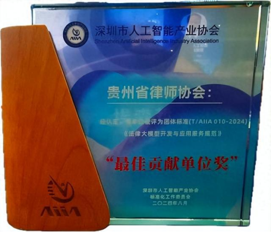 貴州省律師協(xié)會(huì)大數(shù)據(jù)和信息化專業(yè)委員會(huì)主任李緒誠(chéng)律師作為主要起草人,參與國(guó)內(nèi)首個(gè)法律大模型團(tuán)體標(biāo)準(zhǔn)T/AIIA 010-2024《法律大模型開發(fā)與應(yīng)用服務(wù)規(guī)范》編制。該標(biāo)準(zhǔn)于2024年8月發(fā)布,推動(dòng)法律人工智能服務(wù)規(guī)范化、高效化。貴州省律師協(xié)會(huì)獲評(píng)“最佳貢獻(xiàn)單位獎(jiǎng)”,彰顯其在法律科技領(lǐng)域的引領(lǐng)力。