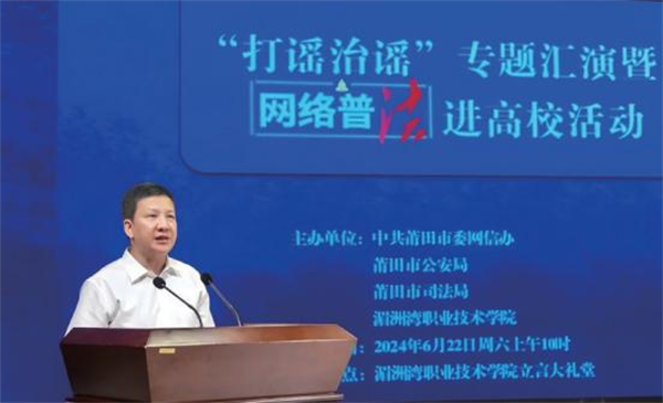 在莆田市委網信辦、市公安局指導下,由莆仙戲劇院團隊創(chuàng)作并演繹莆仙小戲《小五哥破謠記》,通過莆田民間傳奇人物小五哥,重新演繹了打謠治謠的傳奇故事,將國家級非遺莆仙戲和網絡普法巧妙融合,警醒網民“互聯(lián)網不是法外之地”,極具普法教育意義和莆仙文化價值。在2024年網絡普法進高校、進戲臺活動中,獲得了廣大學生、群眾的一致好評。