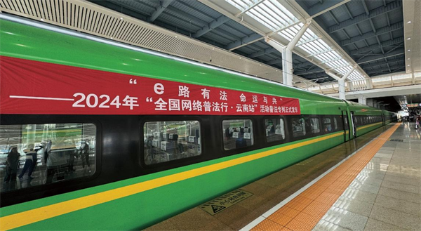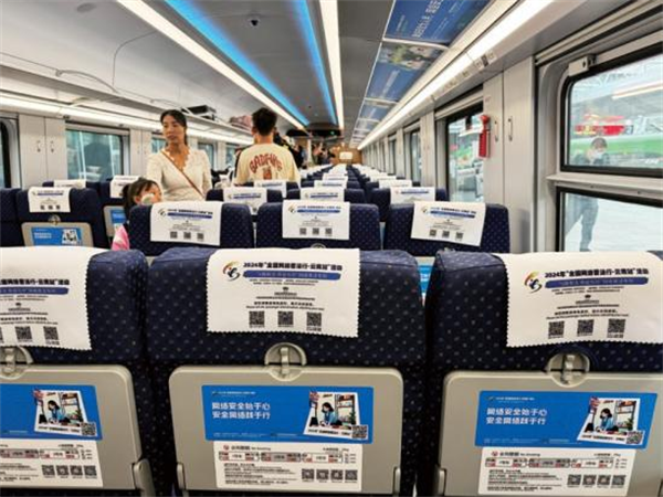 一是打造主題車廂。聚焦“一帶一路”網(wǎng)絡(luò)空間安全和沿線群眾在網(wǎng)絡(luò)法治領(lǐng)域的熱點(diǎn)問題,根據(jù)復(fù)興號CR200J的車型特點(diǎn),設(shè)置“中國網(wǎng)絡(luò)法治三十年”“網(wǎng)絡(luò)安全”“數(shù)據(jù)安全”“未成年人網(wǎng)絡(luò)保護(hù)”“數(shù)據(jù)出境之旅”“反網(wǎng)暴凈網(wǎng)行動”“個人信息守護(hù)”以及“網(wǎng)絡(luò)空間命運(yùn)共同體”8節(jié)主題車廂,讓車廂內(nèi)部成為網(wǎng)絡(luò)普法移動走廊,突出展示新時代中國網(wǎng)絡(luò)法治建設(shè)理念、實(shí)踐成效及交流成果。二是豐富法治內(nèi)容。充分利用車廂內(nèi)鏡框海報(bào)、玻璃貼、小桌板貼、行李架彩貼、頭枕片、LED顯示屏等豐富多彩的載體,以口訣、順口溜、圖片、漫畫、金句等形式展示網(wǎng)絡(luò)法律知識,打造輕松愉快的移動式學(xué)法場景,讓乘客們在享受舒適旅途的同時,也能輕松學(xué)習(xí)到實(shí)用的法律知識,共推出普法圖片50張,漫畫20幅,金句48條。三是互動掃碼學(xué)法。在每個座位的頭枕片上印制“法潤彩云南你我共參與”網(wǎng)絡(luò)法治競賽二維碼,方便群眾可隨時掃碼開展趣味學(xué)法,參與便捷、實(shí)用性強(qiáng),為移動化碎片式學(xué)法提供新途徑,吸引246.5萬人次參與答題,訪問量累計(jì)超645.8萬次。