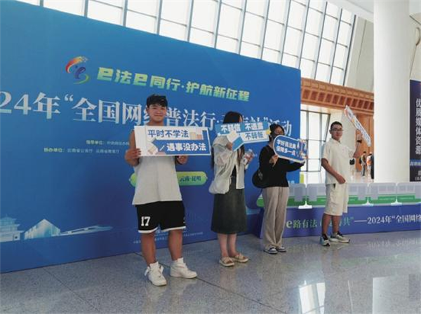 一是加強(qiáng)整體謀劃。“號脈”受眾所需,“靶向”制定中老鐵路沿線站點(diǎn)網(wǎng)絡(luò)普法總體方案,協(xié)同昆明、玉溪、普洱、西雙版納沿線站點(diǎn)結(jié)合自身實(shí)際,擬定氛圍營造子方案,形成中老鐵路沿線網(wǎng)絡(luò)普法工作合力。二是開展線下普法。以普法專列發(fā)車儀式為帶動,以沿線站點(diǎn)候車廳、站前廣場為重點(diǎn),以大屏小屏互動、普法展板宣傳、網(wǎng)絡(luò)普法打卡、民族歌舞唱演等多樣形式開展網(wǎng)絡(luò)普法,提升“面對面”普法實(shí)效。其中,昆明南站設(shè)置網(wǎng)絡(luò)普法打卡裝置,吸引旅客打卡、拍照學(xué)法;普洱站利用進(jìn)出站口電子大屏滾動播放《守護(hù)》《防范非法集資之快樂拉祜》等原創(chuàng)網(wǎng)絡(luò)普法短視頻和《網(wǎng)絡(luò)暴力何時休?法律為你來撐腰》等網(wǎng)絡(luò)普法動畫,營造“e路有法命運(yùn)與共”的濃厚網(wǎng)絡(luò)普法氛圍;西雙版納州委網(wǎng)信辦組織檢察、公安、司法等在站前廣場設(shè)置宣傳展板區(qū)、文創(chuàng)展示區(qū),組織普法志愿者開展憲法、民法典、禁毒、反詐、交通安全等主題普法宣傳,融入生活場景的“親民”普法模式,有效提升普法向心力。