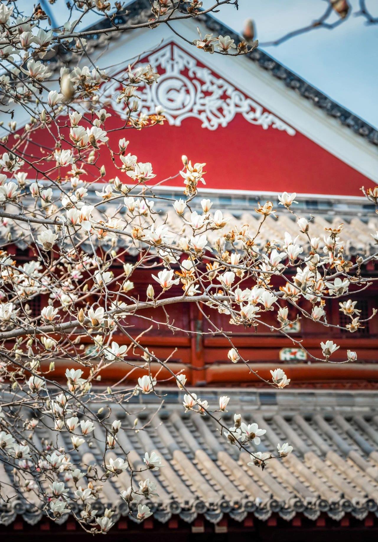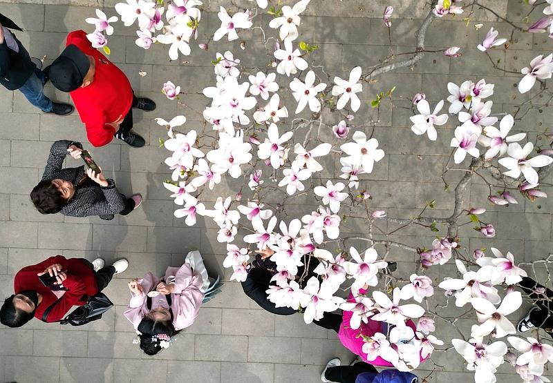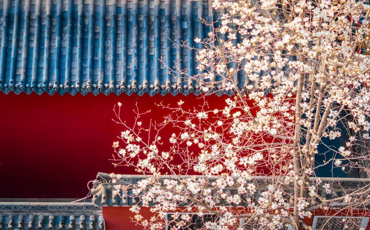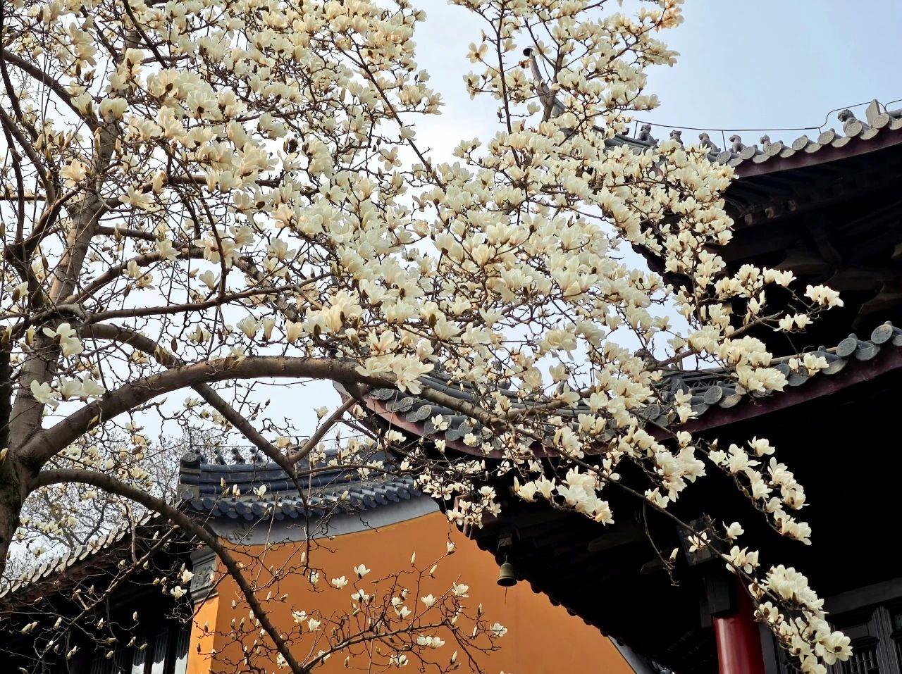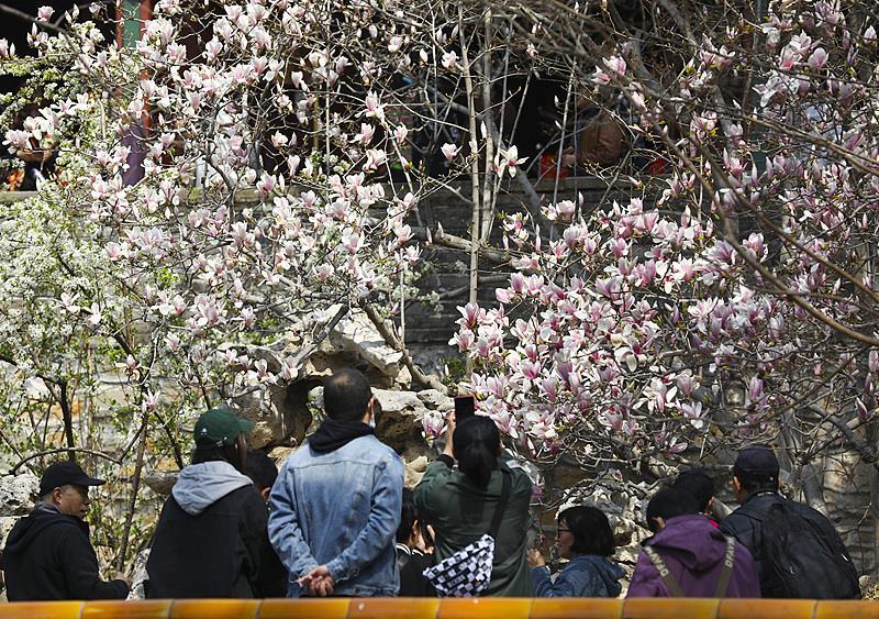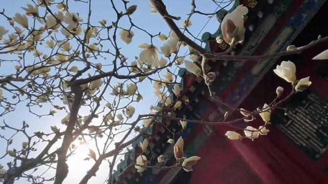 北京潭柘寺內(nèi)各色玉蘭依次開放