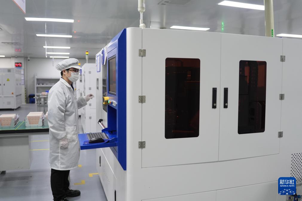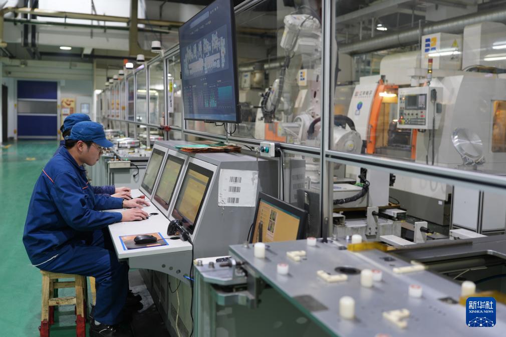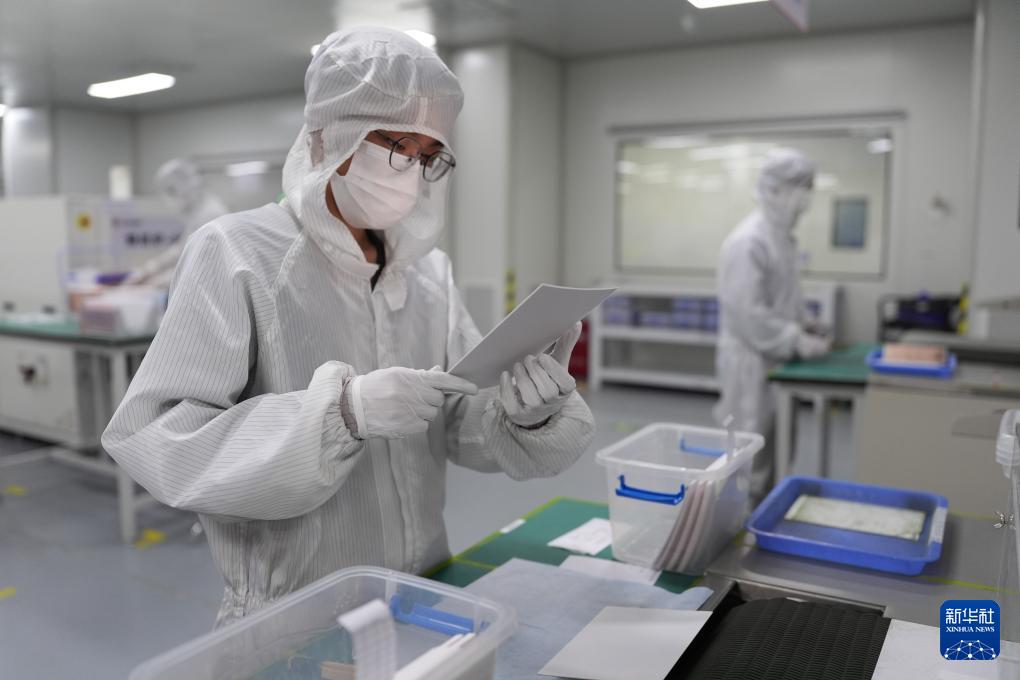 技術工人在寧波江豐同芯半導體材料有限公司的智能生產車間作業(yè)(3月20日攝)。