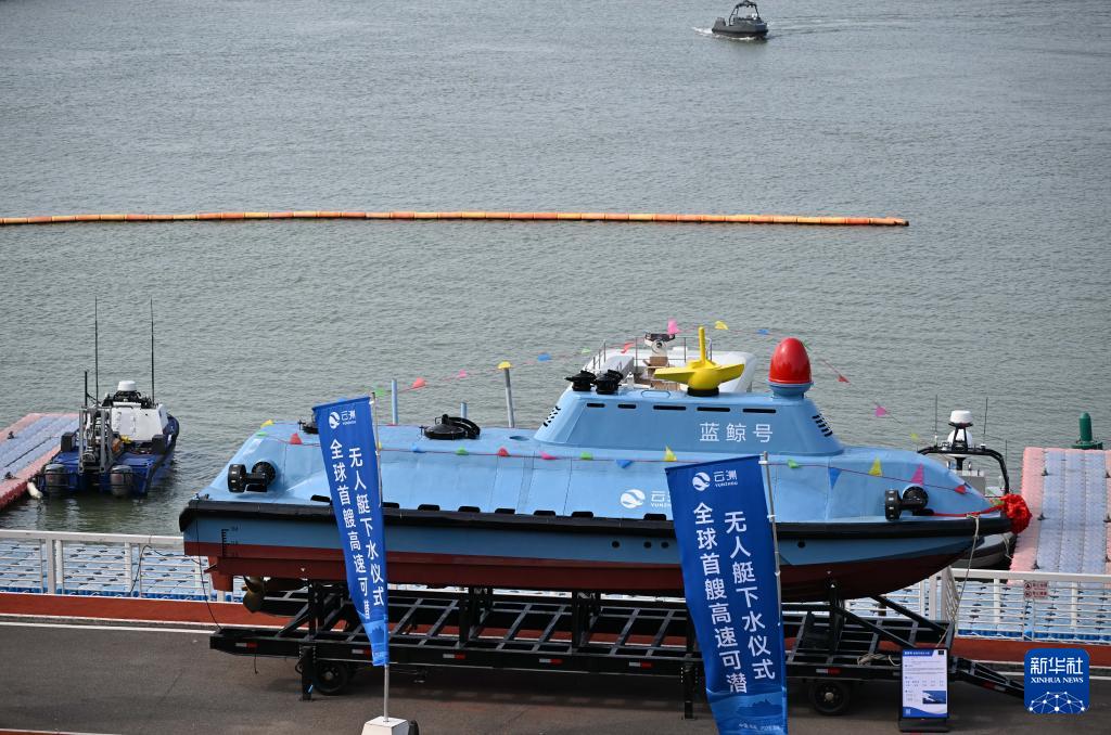 4月29日在珠海云洲智能科技股份有限公司拍攝的“藍(lán)鯨號(hào)”高速可潛無人艇。