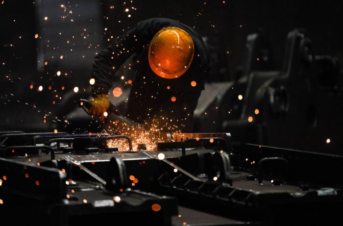 2025年3月19日,在河南省林州市紅旗渠經(jīng)濟(jì)技術(shù)開(kāi)發(fā)區(qū),工人在林州重機(jī)集團(tuán)股份有限公司的鉚焊車(chē)間進(jìn)行打磨作業(yè)。新華社記者 樊雨晴 攝