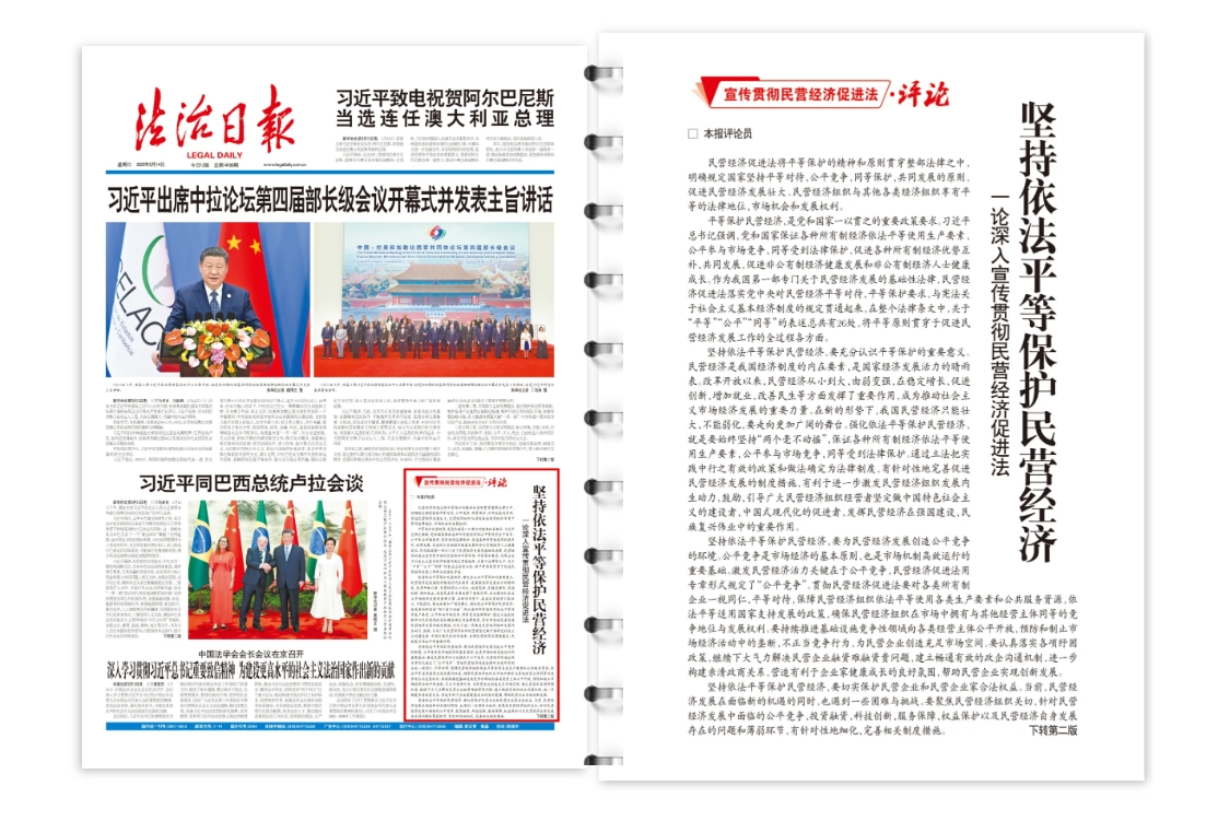 平等保護(hù)民營經(jīng)濟(jì),是黨和國家一以貫之的重要政策要求。習(xí)近平總書記強(qiáng)調(diào),黨和國家保證各種所有制經(jīng)濟(jì)依法平等使用生產(chǎn)要素、公平參與市場競爭、同等受到法律保護(hù),促進(jìn)各種所有制經(jīng)濟(jì)優(yōu)勢互補(bǔ)、共同發(fā)展,促進(jìn)非公有制經(jīng)濟(jì)健康發(fā)展和非公有制經(jīng)濟(jì)人士健康成長。作為我國第一部專門關(guān)于民營經(jīng)濟(jì)發(fā)展的基礎(chǔ)性法律,民營經(jīng)濟(jì)促進(jìn)法落實(shí)黨中央對(duì)民營經(jīng)濟(jì)平等對(duì)待、平等保護(hù)要求,與憲法關(guān)于社會(huì)主義基本經(jīng)濟(jì)制度的規(guī)定貫通起來,在整個(gè)法律條文中,關(guān)于“平等”“公平”“同等”的表述總共有26處,將平等原則貫穿于促進(jìn)民營經(jīng)濟(jì)發(fā)展工作的全過程各方面。