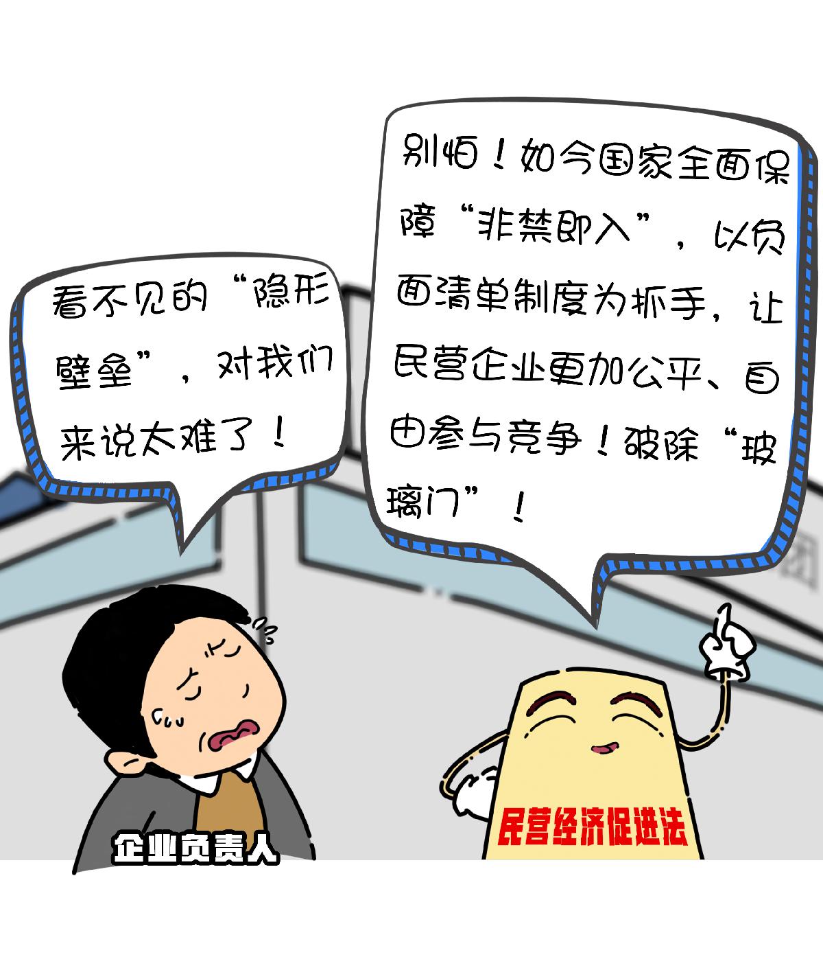 民營(yíng)經(jīng)濟(jì)促進(jìn)法第十條 國(guó)家實(shí)行全國(guó)統(tǒng)一的市場(chǎng)準(zhǔn)入負(fù)面清單制度。市場(chǎng)準(zhǔn)入負(fù)面清單以外的領(lǐng)域,包括民營(yíng)經(jīng)濟(jì)組織在內(nèi)的各類經(jīng)濟(jì)組織可以依法平等進(jìn)入。