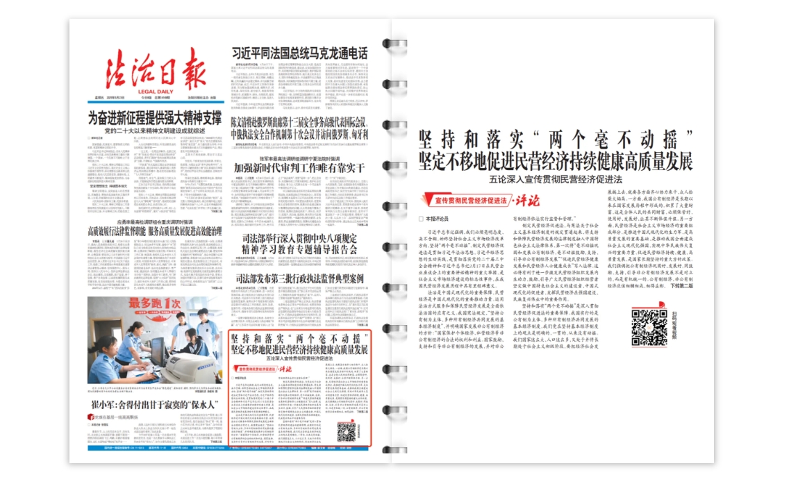 制定民營(yíng)經(jīng)濟(jì)促進(jìn)法,與憲法關(guān)于社會(huì)主義基本經(jīng)濟(jì)制度的規(guī)定貫通起來(lái),將支持和保障民營(yíng)經(jīng)濟(jì)發(fā)展的法律制度融入中國(guó)特色社會(huì)主義法律體系,第一次將“毫不動(dòng)搖鞏固和發(fā)展公有制經(jīng)濟(jì),毫不動(dòng)搖鼓勵(lì)、支持、引導(dǎo)非公有制經(jīng)濟(jì)發(fā)展”“促進(jìn)民營(yíng)經(jīng)濟(jì)健康發(fā)展和民營(yíng)經(jīng)濟(jì)人士健康成長(zhǎng)”寫入法律。這必將有利于進(jìn)一步激發(fā)民營(yíng)經(jīng)濟(jì)組織發(fā)展內(nèi)生動(dòng)力,鼓勵(lì)、引導(dǎo)廣大民營(yíng)經(jīng)濟(jì)組織經(jīng)營(yíng)者堅(jiān)定做中國(guó)特色社會(huì)主義的建設(shè)者、中國(guó)式現(xiàn)代化的促進(jìn)者,發(fā)揮民營(yíng)經(jīng)濟(jì)在強(qiáng)國(guó)建設(shè)、民族復(fù)興偉業(yè)中的重要作用。