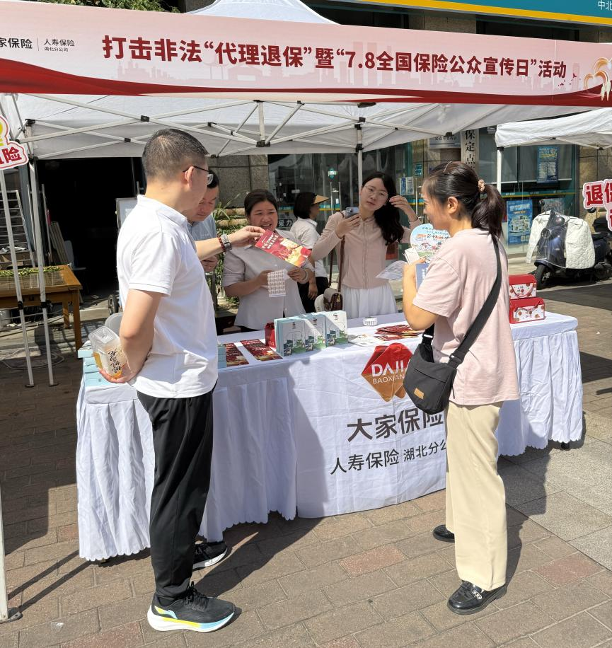 7月5日,在2025年“7.8全國(guó)保險(xiǎn)公眾宣傳日”來臨之際,大家人壽湖北分公司與武漢市12家金融機(jī)構(gòu)一道,冒著酷暑走進(jìn)武昌區(qū)復(fù)地東湖國(guó)際武重社區(qū),積極參加由國(guó)家金融監(jiān)督管理總局湖北監(jiān)管局領(lǐng)導(dǎo)、湖北省保險(xiǎn)行業(yè)協(xié)會(huì)指導(dǎo)、極目新聞主辦的“向非法代理退保說不,我們?cè)谛袆?dòng)”宣傳活動(dòng)。本次活動(dòng)以打擊非法“代理退?!濒摺?.8全國(guó)保險(xiǎn)公眾宣傳日”為主題,吸引了眾多社區(qū)居民參與,以豐富多元的形式掀起社區(qū)公眾反詐防騙熱潮。