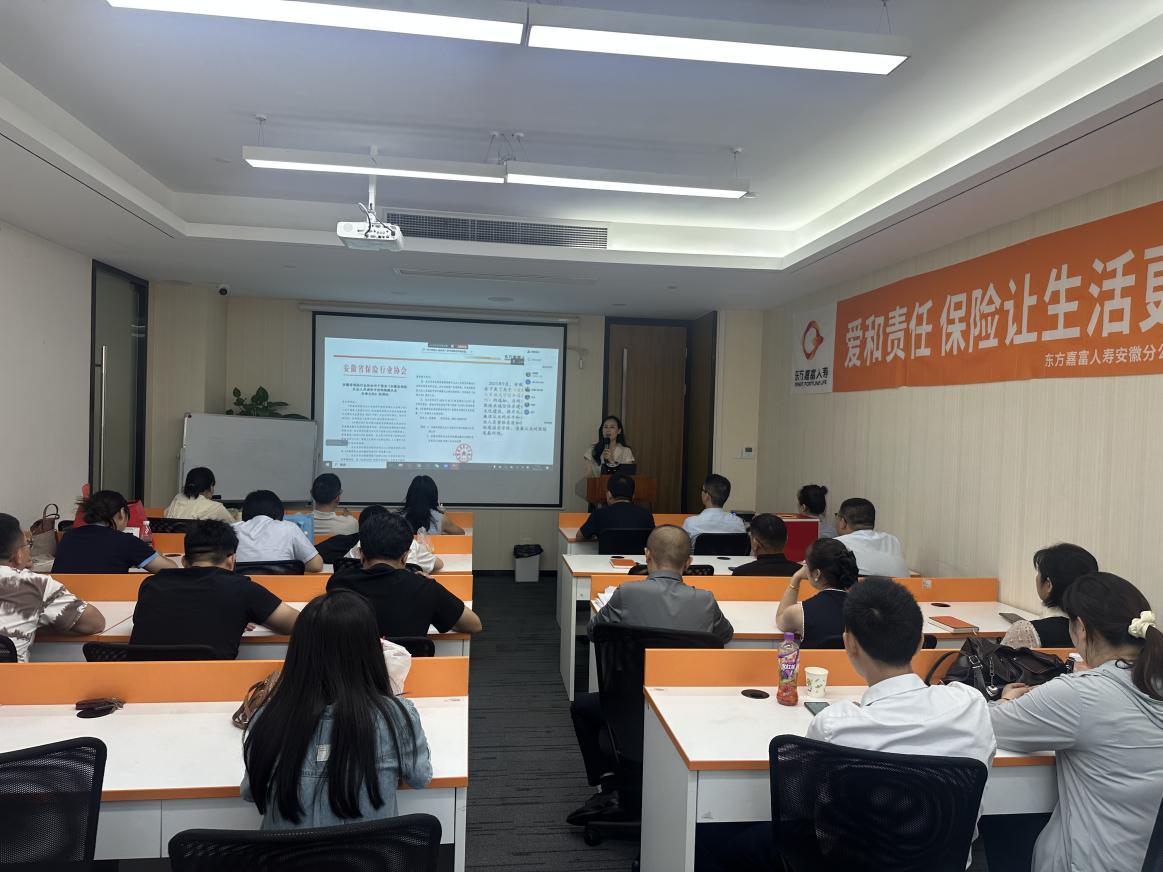 7月8日,公司牽頭組織東吳人壽、中荷人壽、招商信諾人壽等多家壽險(xiǎn)公司,在廬陽(yáng)區(qū)正奇金融廣場(chǎng)舉辦金融宣傳戶外專場(chǎng)?;顒?dòng)通過(guò)“線下咨詢+戶外大屏公益展播”雙渠道聯(lián)動(dòng):現(xiàn)場(chǎng)設(shè)置專項(xiàng)服務(wù)區(qū),由專業(yè)團(tuán)隊(duì)解答保險(xiǎn)配置、理賠服務(wù)等問(wèn)題,并普及反詐防非金融知識(shí);同步在正奇金融廣場(chǎng)戶外大屏高頻播放“愛(ài)和責(zé)任 保險(xiǎn)讓生活更美好”主題海報(bào),以動(dòng)態(tài)視覺(jué)強(qiáng)化傳播效果,全方位展現(xiàn)保險(xiǎn)行業(yè)的社會(huì)價(jià)值。安徽省保險(xiǎn)行業(yè)協(xié)會(huì)張雪冰副秘書長(zhǎng)一行來(lái)到現(xiàn)場(chǎng)與各公司代表深入交流,在肯定活動(dòng)成效的同時(shí),提出“創(chuàng)新宣傳形式、強(qiáng)化平臺(tái)聯(lián)動(dòng)”的指導(dǎo)意見(jiàn),為后續(xù)宣教工作指明方向。東方嘉富人壽總公司副總經(jīng)理、運(yùn)營(yíng)總監(jiān),運(yùn)營(yíng)中心負(fù)責(zé)人等一行領(lǐng)導(dǎo)親臨活動(dòng)現(xiàn)場(chǎng),聚焦風(fēng)險(xiǎn)減量、康養(yǎng)服務(wù)、安全急救、金融反詐等主題開(kāi)展知識(shí)宣講、咨詢答疑等進(jìn)行宣傳服務(wù)工作。