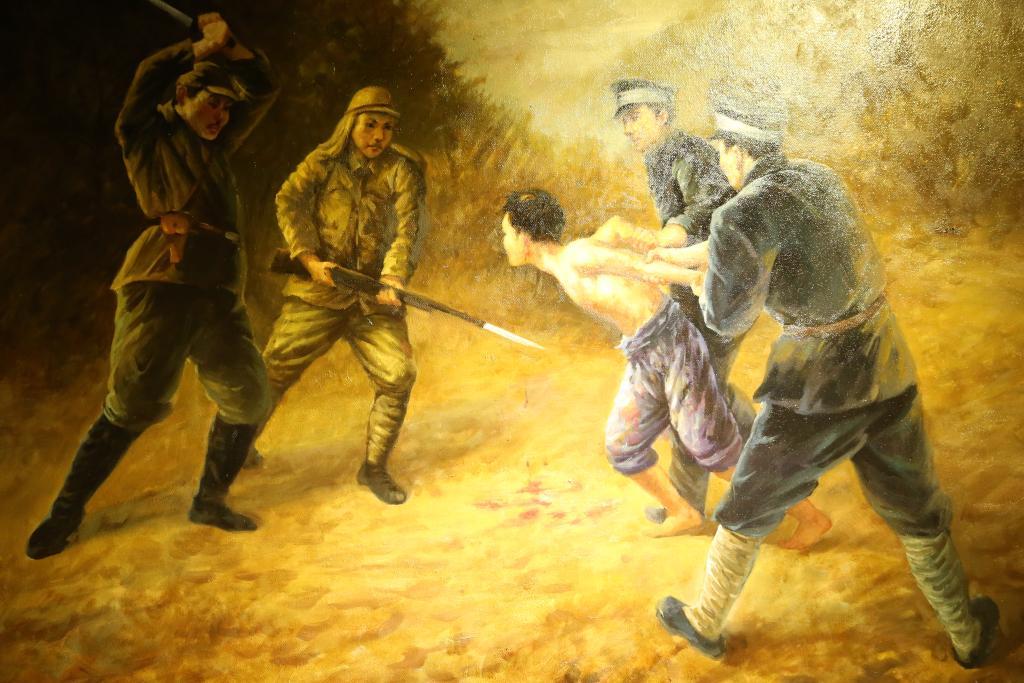 在浙江省長(zhǎng)興縣有一位13歲犧牲的小烈士,他就是徐昌勝。13歲是一個(gè)花季的年齡,本該在寬敞的教室里學(xué)習(xí)、在對(duì)父母的撒嬌中成長(zhǎng),不缺吃、不缺穿,更沒(méi)有生命危險(xiǎn)。然而,13歲的徐昌勝大義凜然,堅(jiān)貞不屈,面對(duì)敵人的嚴(yán)刑拷打,保守了秘密,直至獻(xiàn)出了自己的寶貴生命!他的生命永遠(yuǎn)定格在了1944年,定格在了他的13歲。他沒(méi)有拍過(guò)任何一張照片,僅有一張靠當(dāng)?shù)乩先说幕貞浗o他畫(huà)的一幅畫(huà)像。
