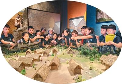 “古蜀尋春季”研學活動現(xiàn)場,孩子們參觀寶墩遺址博物館。 成都市新津區(qū)文廣體旅局供圖