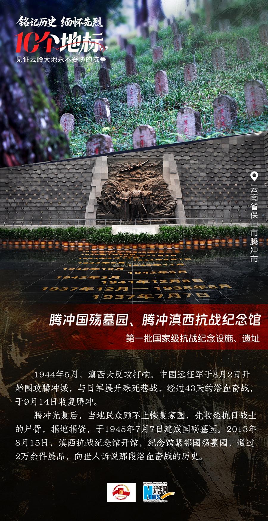 80年過去,曾經(jīng)的戰(zhàn)場硝煙雖散,但英氣永存。在國務(wù)院公布的前三批國家級抗戰(zhàn)紀念設(shè)施、遺址名錄中,云南省共有10個,分別為騰沖國殤墓園、騰沖滇西抗戰(zhàn)紀念館,龍陵抗日戰(zhàn)爭紀念館,國立西南聯(lián)合大學(xué)舊址,抗戰(zhàn)勝利紀念堂,松山戰(zhàn)役舊址,南洋華僑機工回國抗日紀念碑,怒江駝峰航線紀念館,施甸縣抗日江防遺跡群,滇緬公路惠通橋,滇西抗日戰(zhàn)爭紀念碑。它們承載著國人共同的歷史記憶與民族情感,也為我們學(xué)習(xí)和傳承抗戰(zhàn)精神提供了現(xiàn)實條件。