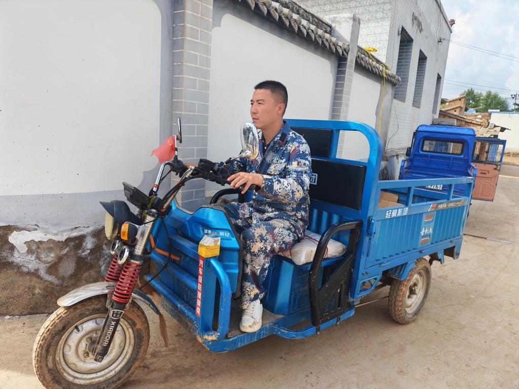 8月10日,王棟駕駛農(nóng)用車(chē)準(zhǔn)備運(yùn)送物資。新華社記者 崔翰超 攝