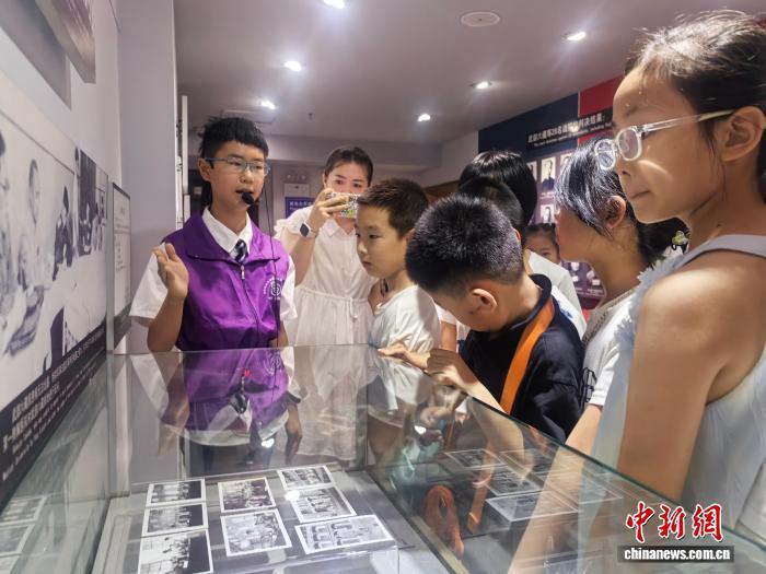 近日,在沈陽審判日本戰(zhàn)犯法庭舊址陳列館內(nèi),小講解員在展柜前為同學(xué)們講述歷史。(沈陽審判日本戰(zhàn)犯法庭舊址陳列館供圖)