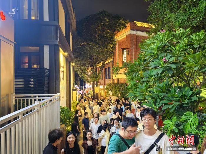 8月23日晚,福州煙臺山歷史風貌區(qū)的街巷內游人如織。 中新網(wǎng)記者 閆旭 攝