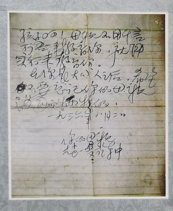 陳掖賢(寧兒)抄寫的趙一曼的遺書。(受訪者供圖)
