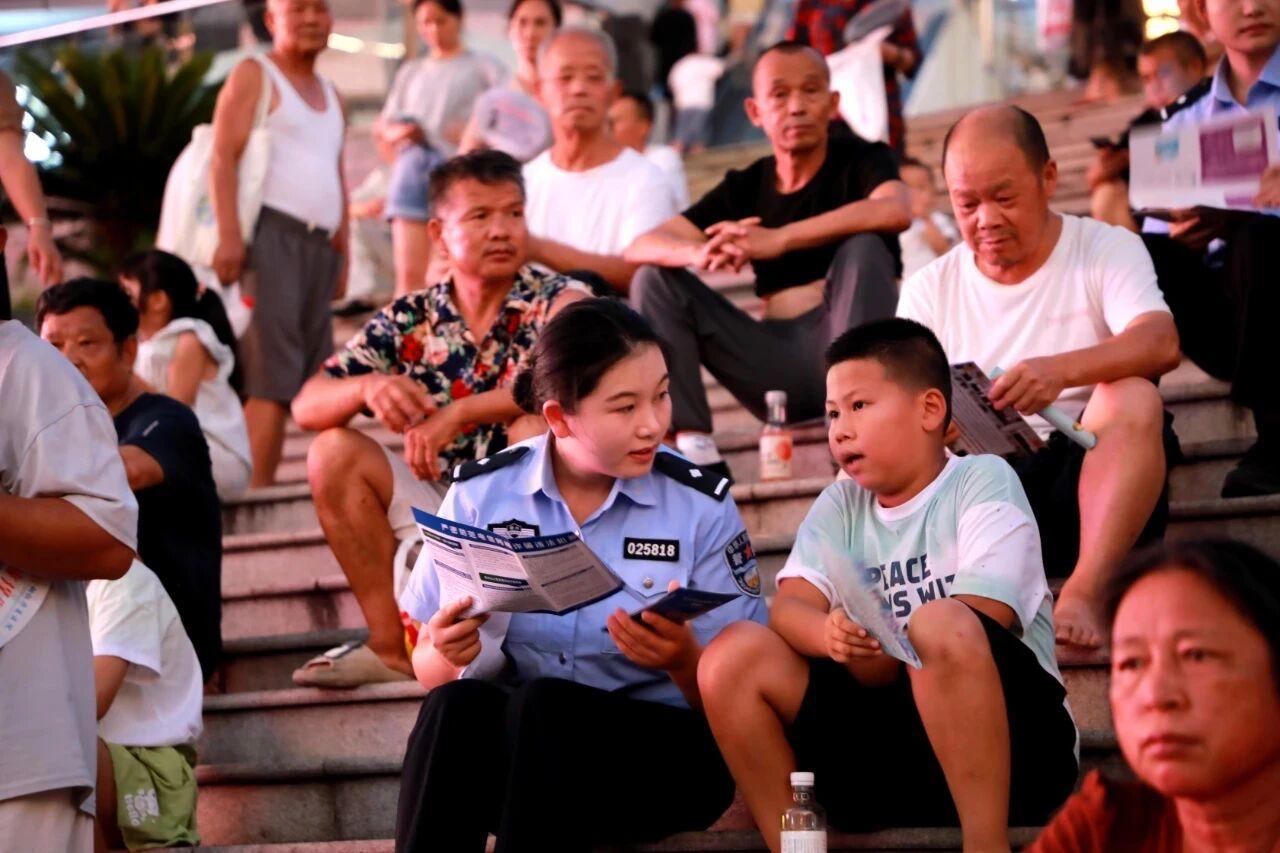 電影開(kāi)場(chǎng)前,反詐、消防、反邪防邪的普法短片循環(huán)播放,畫(huà)面里的案例不是生硬的說(shuō)教,而是街坊能聽(tīng)懂的“家常話(huà)”?!胺娠L(fēng)險(xiǎn)大轉(zhuǎn)盤(pán)”前,孩子們踮腳搶答“防溺水要注意什么”,答對(duì)時(shí)接過(guò)的小禮品里,藏著民法典的生活解讀?!胺ㄖ谴箨J關(guān)”桌旁,老人們湊在一起研究“陌生鏈接能不能點(diǎn)”,工作人員遞上的宣傳冊(cè),把“刷單返利是騙局”的提醒印得明明白白。沒(méi)有單向灌輸?shù)目菰?,只有寓教于?lè)的互動(dòng),正如參與市民所說(shuō):“在休閑中就把法律知識(shí)記牢了,在玩鬧中就把自我保護(hù)能力提升了?!碑?dāng)文化IP與普法相遇,法律便從“紙上條文”走進(jìn)了“茶余飯后”。