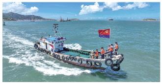 圖為浙江省岱山縣公安局羅家岙派出所民警近日乘坐“瀛洲紅帆船”開展海上巡查。 本報(bào)通訊員 鄒訓(xùn)永 攝
