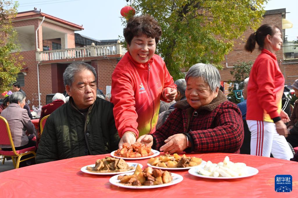 10月27日,在河南省沁陽(yáng)市西萬(wàn)鎮(zhèn)留莊村舉辦的“九九重陽(yáng)節(jié),濃濃敬老情”迎重陽(yáng)主題活動(dòng)中,志愿者為老人擺上“長(zhǎng)壽宴”菜品。