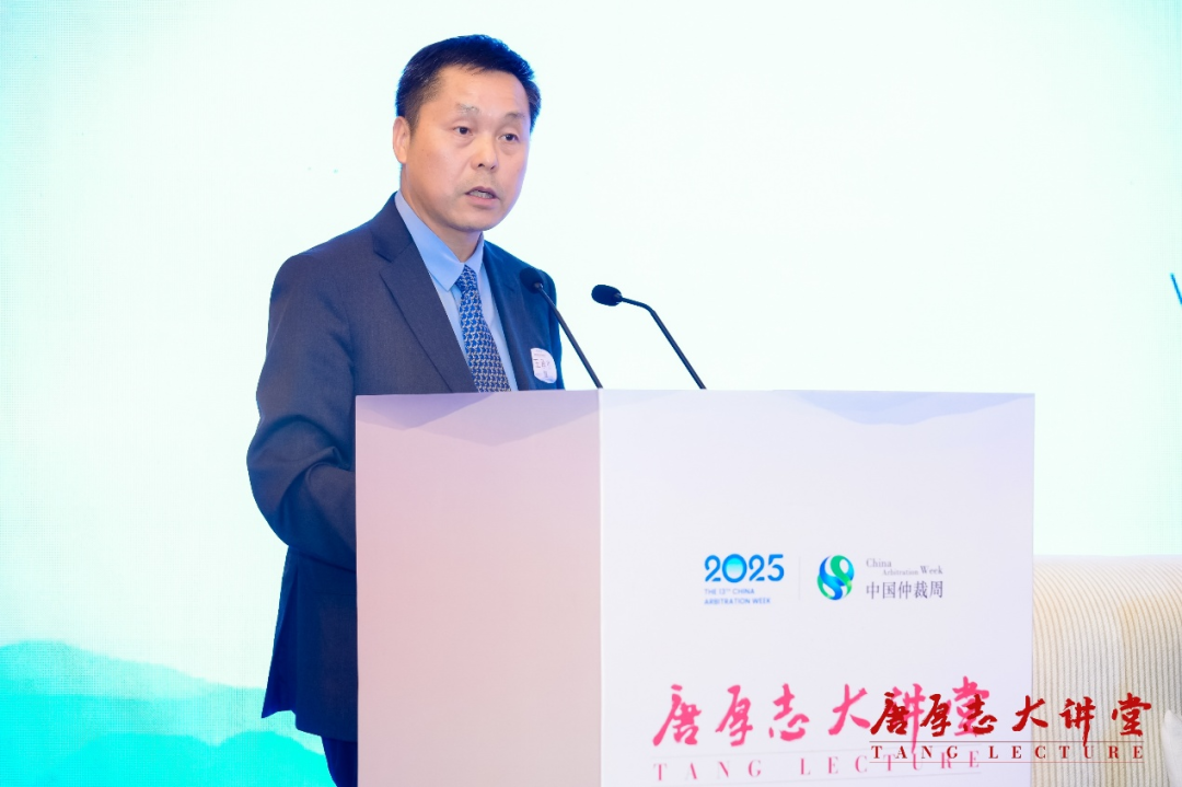 王承杰在致辭中介紹,唐厚志大講堂是為了紀(jì)念我國仲裁事業(yè)的重要奠基人和開拓者唐厚志先生而設(shè)立。近年來,黨和國家高度重視并積極推動(dòng)仲裁事業(yè)發(fā)展,黨的二十屆三中全會(huì)對(duì)深化仲裁制度改革,健全國際商事仲裁制度、培育國際一流仲裁機(jī)構(gòu)提出了明確要求;今年7月,司法部專門召開涉外仲裁工作座談會(huì),研究加快推進(jìn)涉外仲裁工作高質(zhì)量發(fā)展,實(shí)施中國特色的國際一流仲裁機(jī)構(gòu)培育工程。9月12日,十四屆全國人大常委會(huì)第十七次會(huì)議表決通過新修訂的仲裁法,自2026年3月1日起施行,為國際商事仲裁中心建設(shè)提供立法保障。
